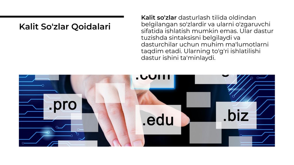 Kalit So'zlar Nima?Kalit so'zlar - dasturlash tilining