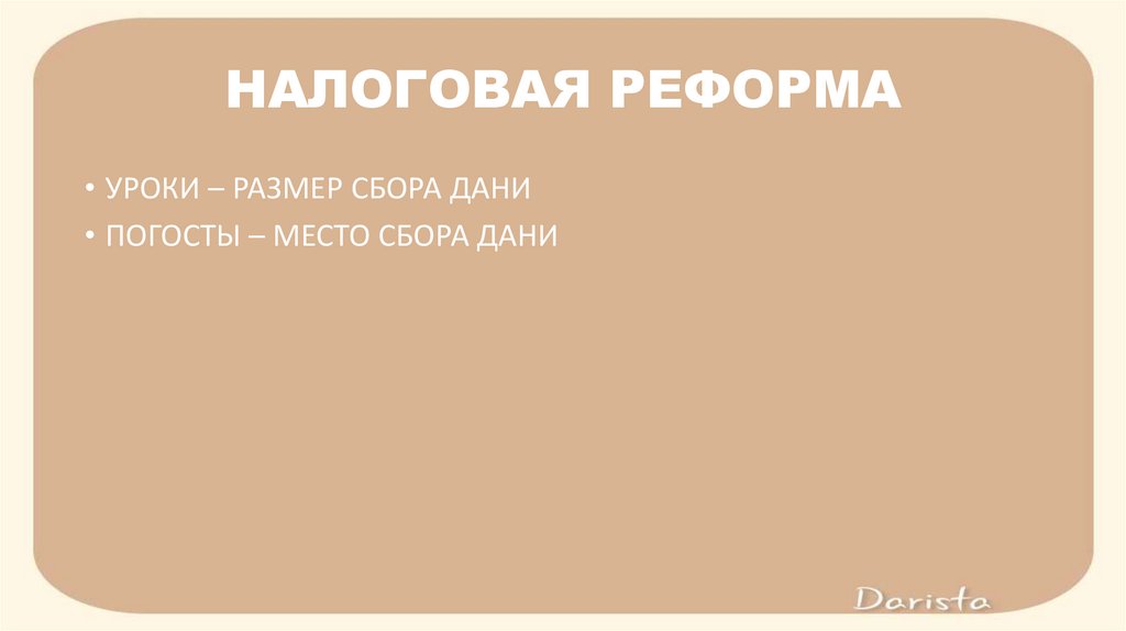 НАЛОГОВАЯ РЕФОРМА• УРОКИ – РАЗМЕР СБОРА ДАНИ