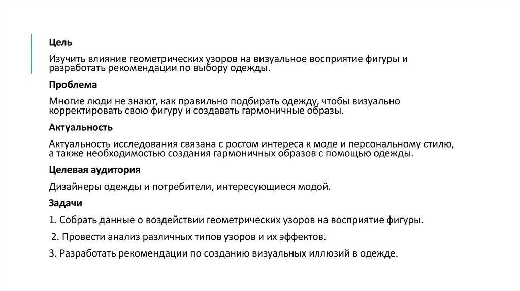 3. Разработать рекомендации по созданию визуальных иллюзий в одежде.