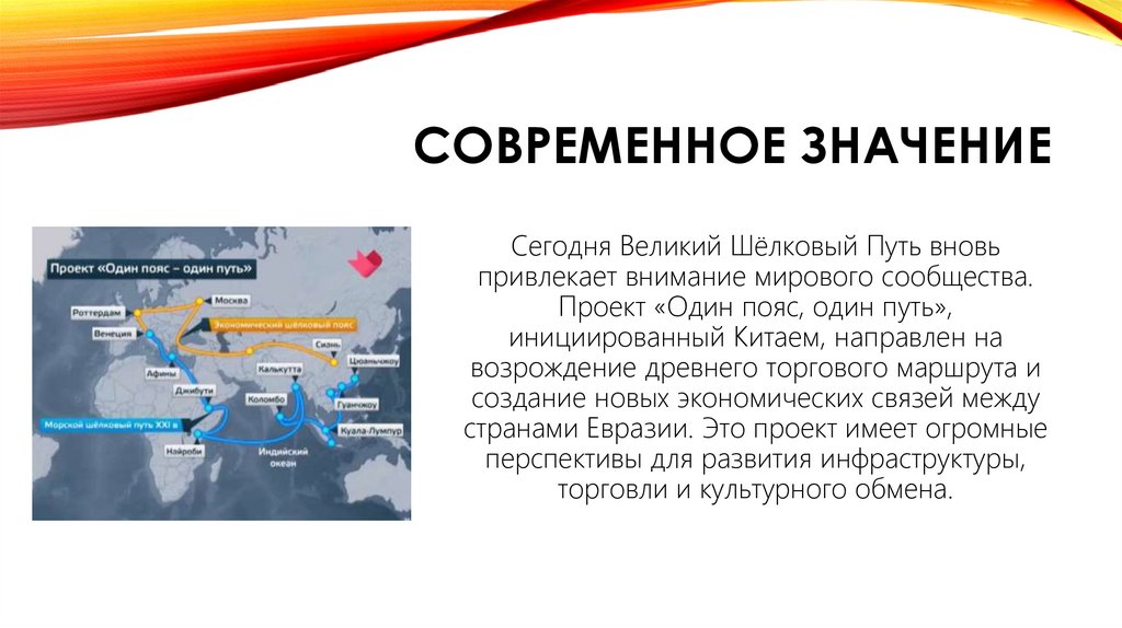 СОВРЕМЕННОЕ ЗНАЧЕНИЕСегодня Великий Шёлковый Путь вновь