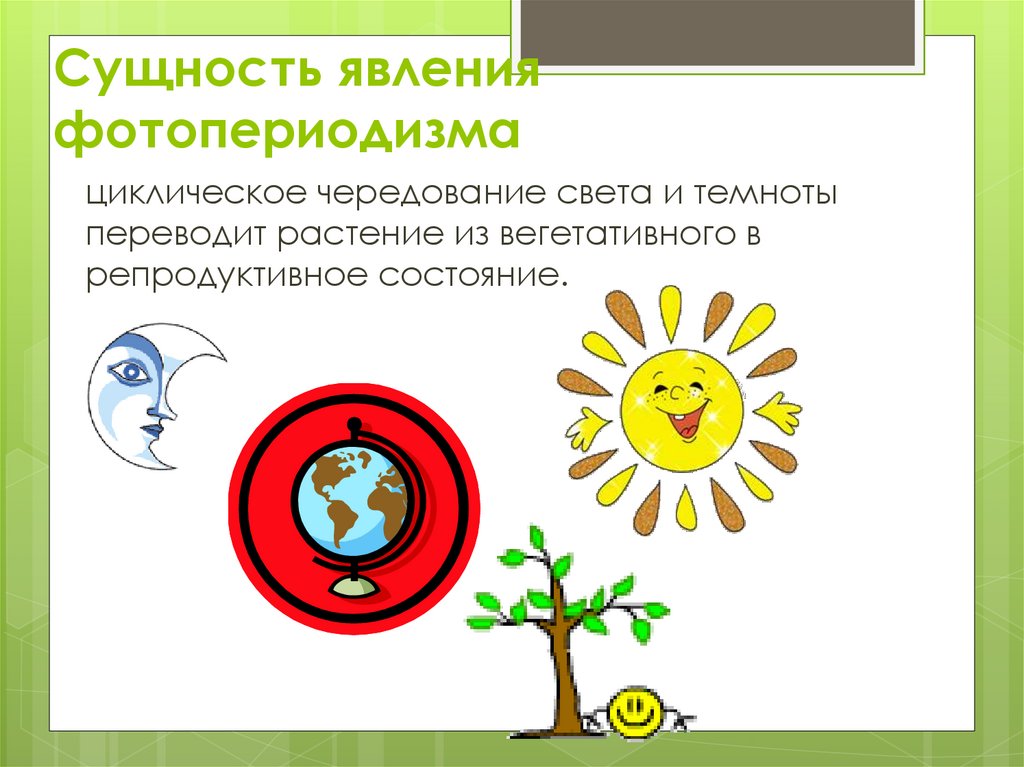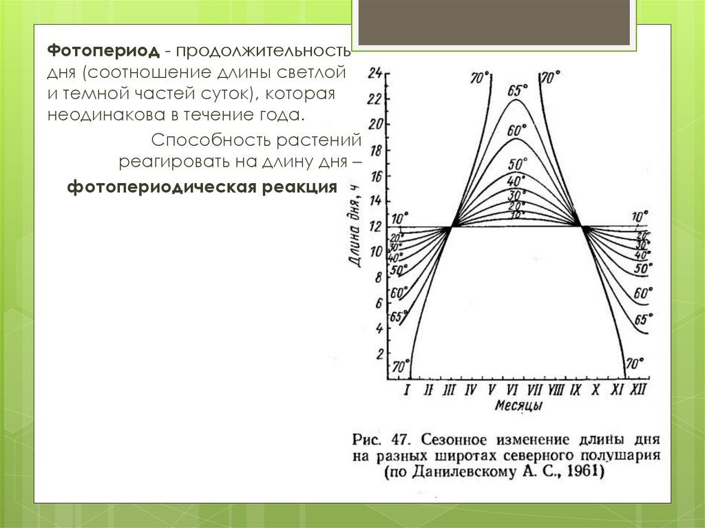 Фотопериод - продолжительностьдня (соотношение длины светлой