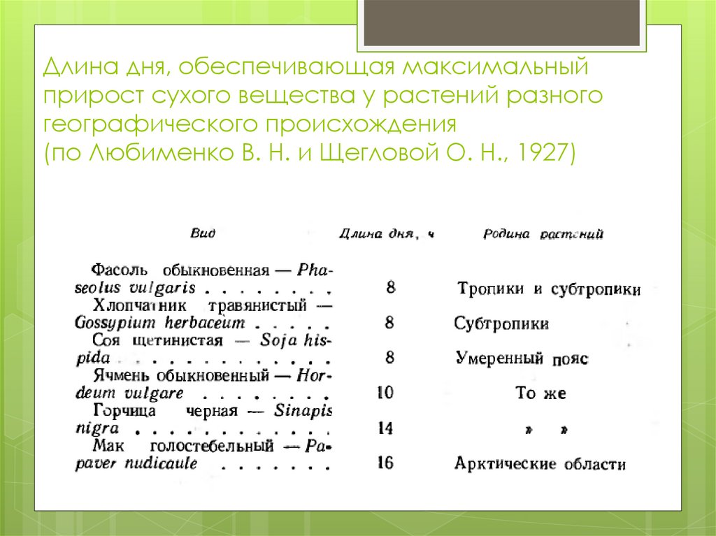 Фотопериодизм. Авторы открытия. Группы растений потипу ФПР. Зависимость географического