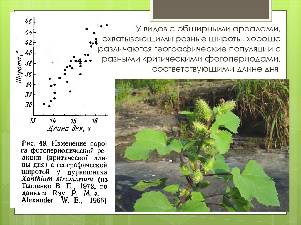 У видов с обширными ареалами,охватывающими разные широты, хорошо