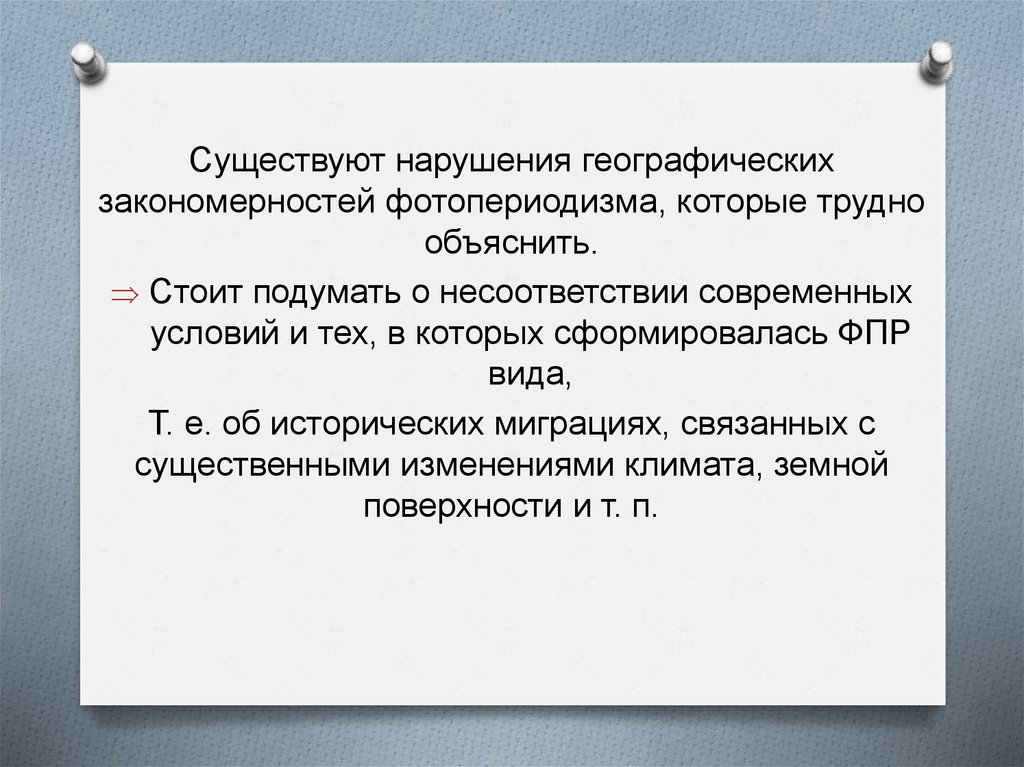 Существуют нарушения географическихзакономерностей фотопериодизма, которые трудно