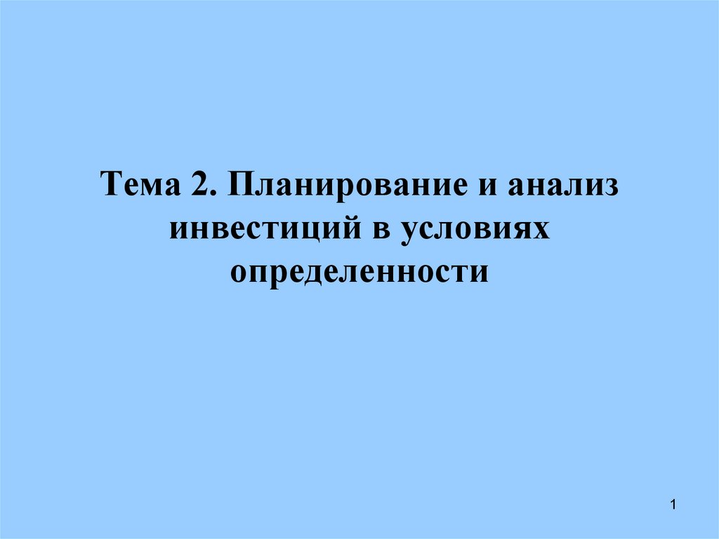 Тема 2. Планирование и анализинвестиций в условиях