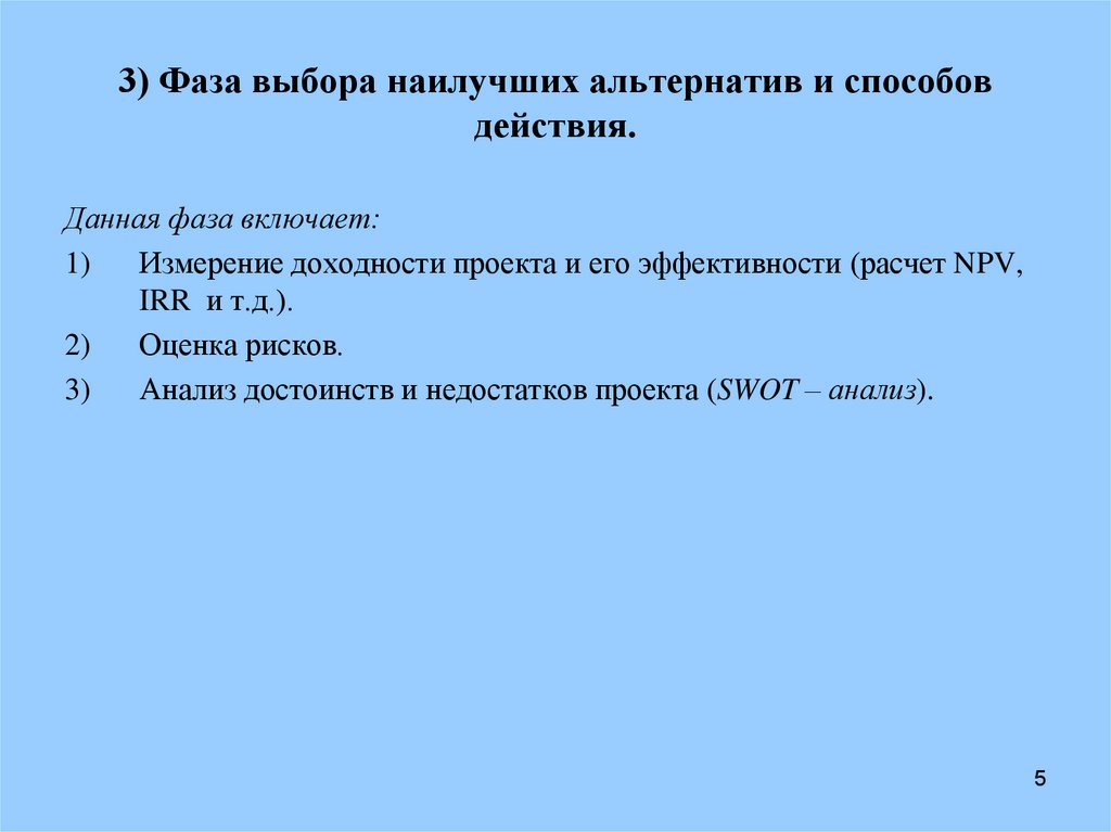 3) выбор наилучших альтернатив и способов действия;
