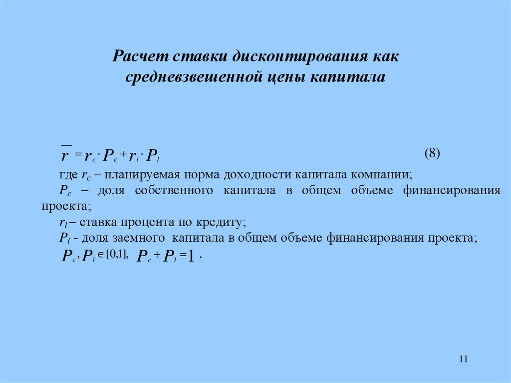 Расчет ставки дисконтирования каксредневзвешенной цены капитала