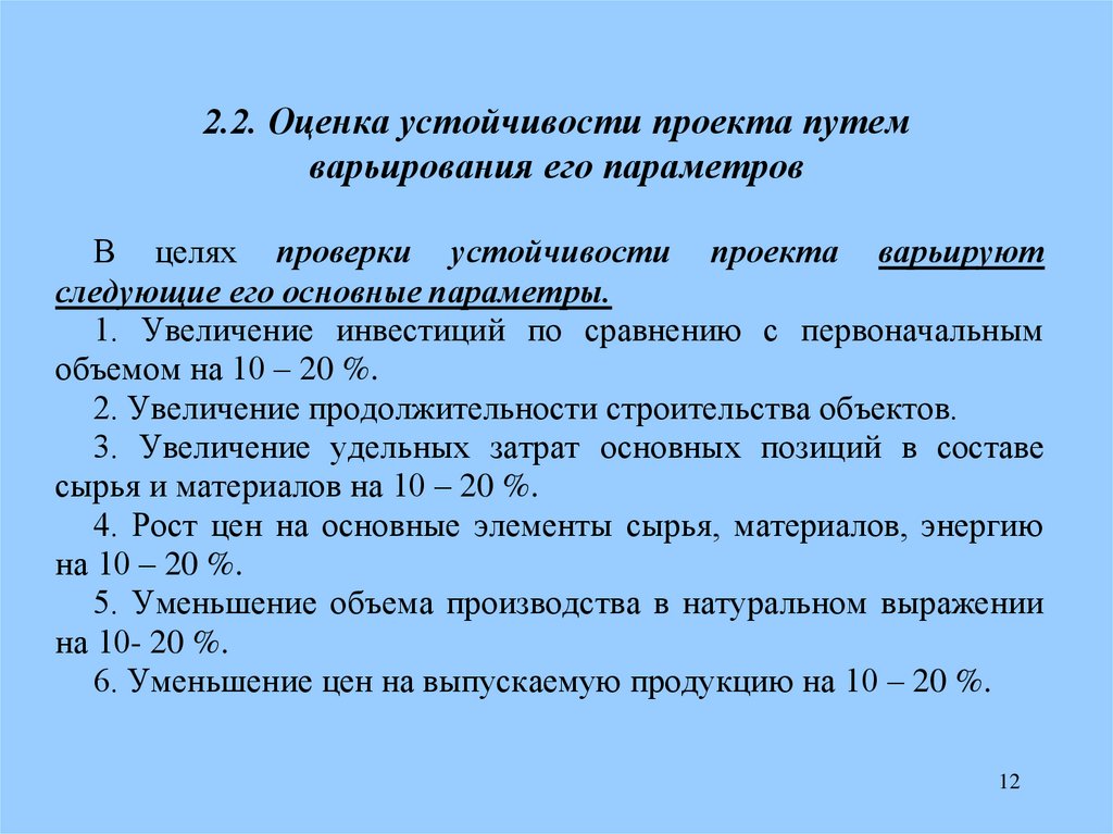 2.2. Оценка устойчивости проекта путемварьирования его параметров