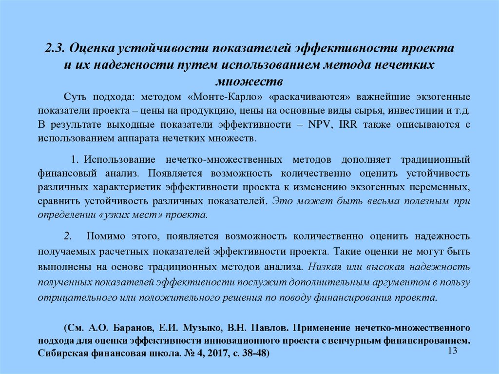 2.3. Оценка устойчивости показателей эффективности проектаи их надежности путем использованием метода нечетких