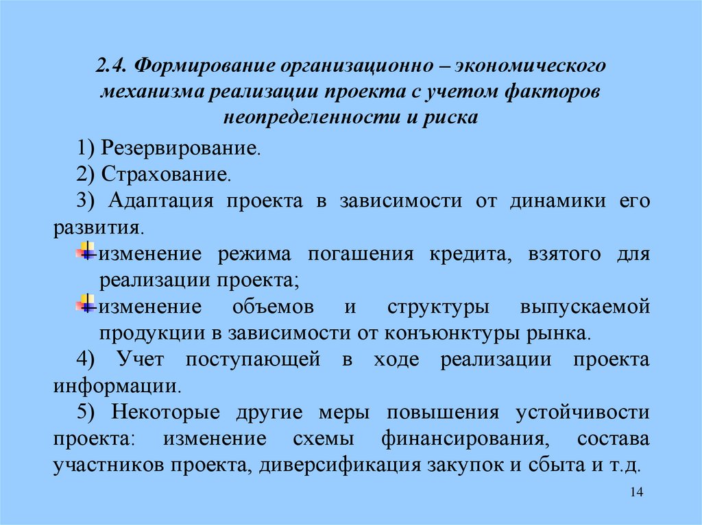 2.4. Формирование организационно – экономическогомеханизма реализации проекта с учетом факторов