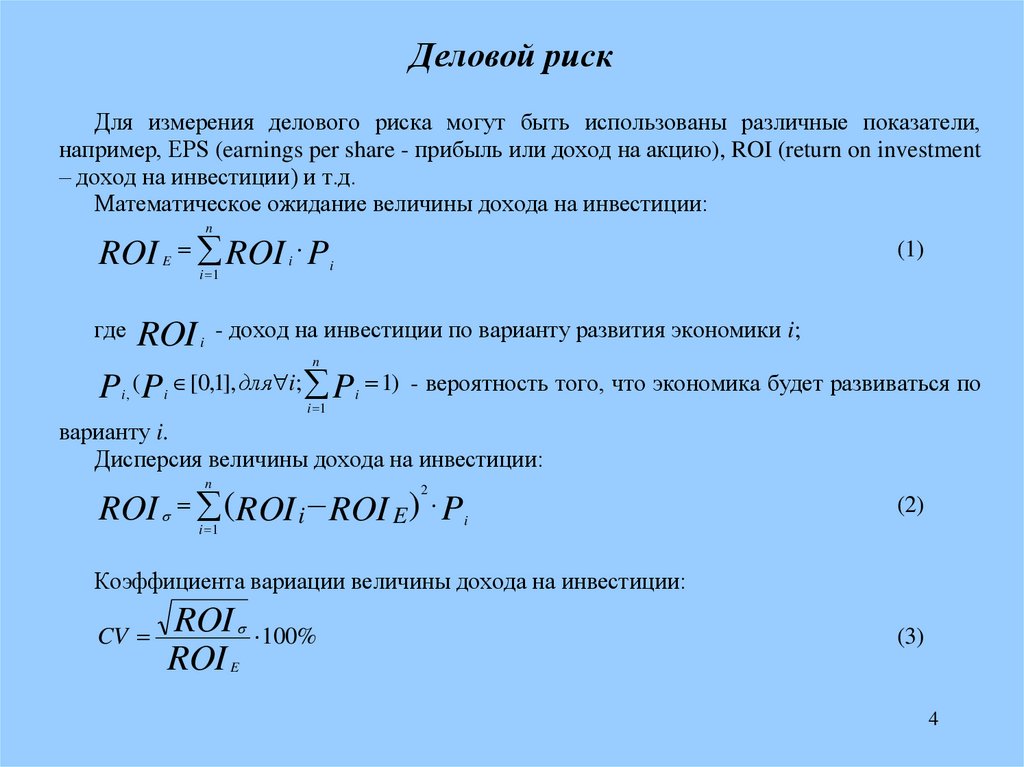 – доход на инвестиции) и т.д.