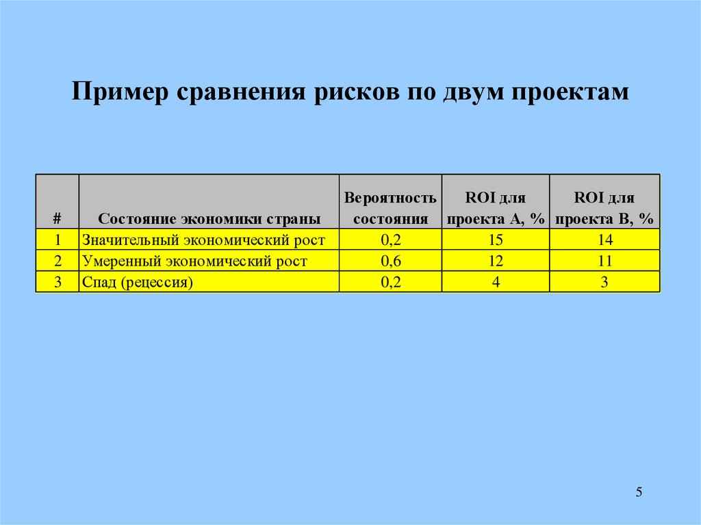 Пример сравнения рисков по двум проектам#