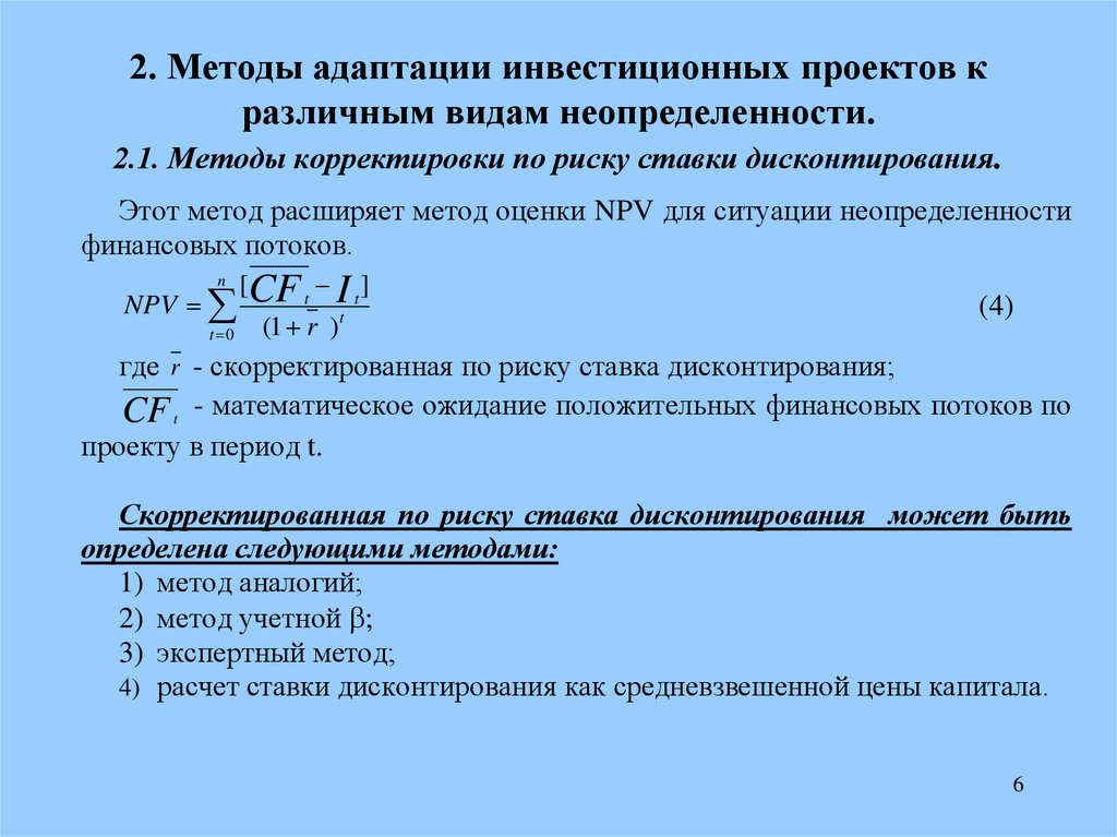 2. Методы адаптации инвестиционных проектов кразличным видам неопределенности.