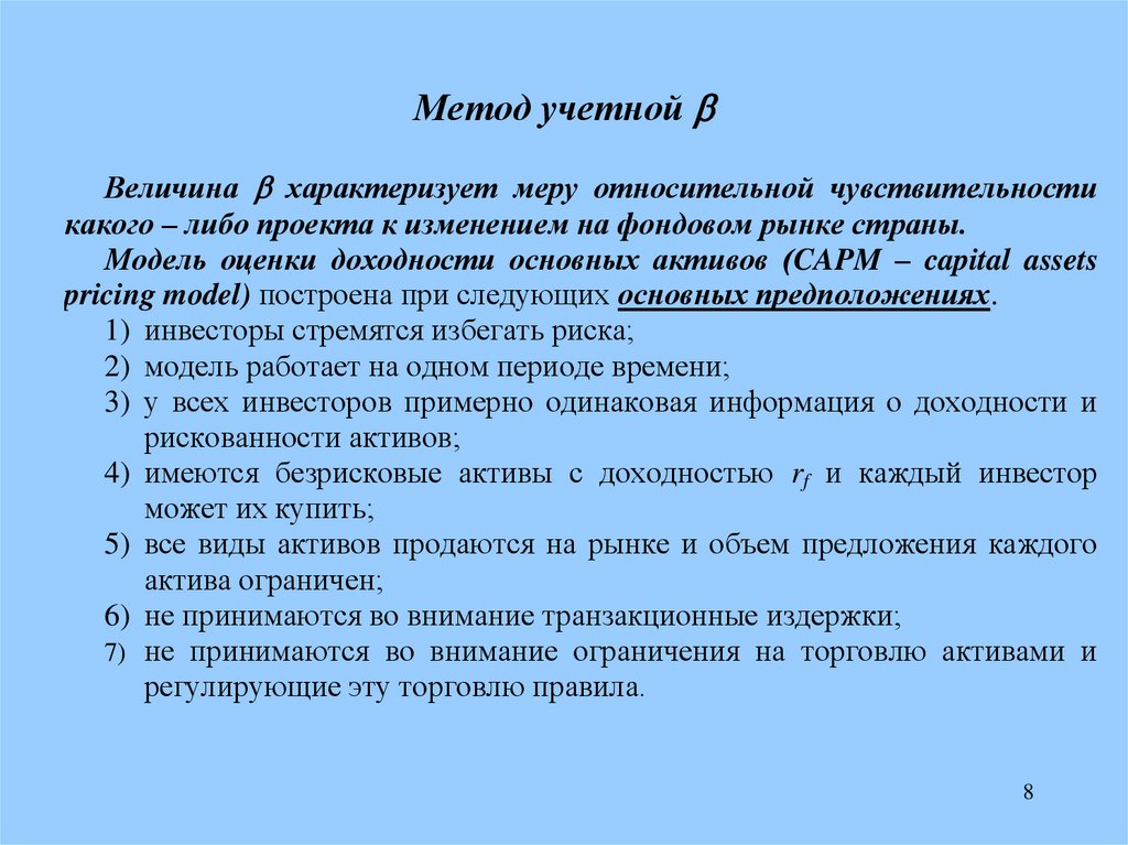 где rm – средняя ожидаемая доходность рынка ценных бумаг в целом;