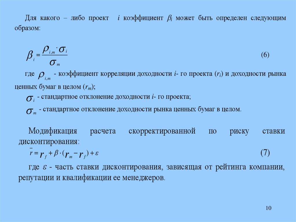 где - коэффициент корреляции доходности i- го проекта (ri) и доходности рынка