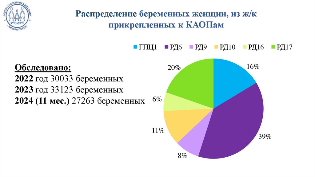 Распределение беременных женщин, из ж/кприкрепленных к КАОПам