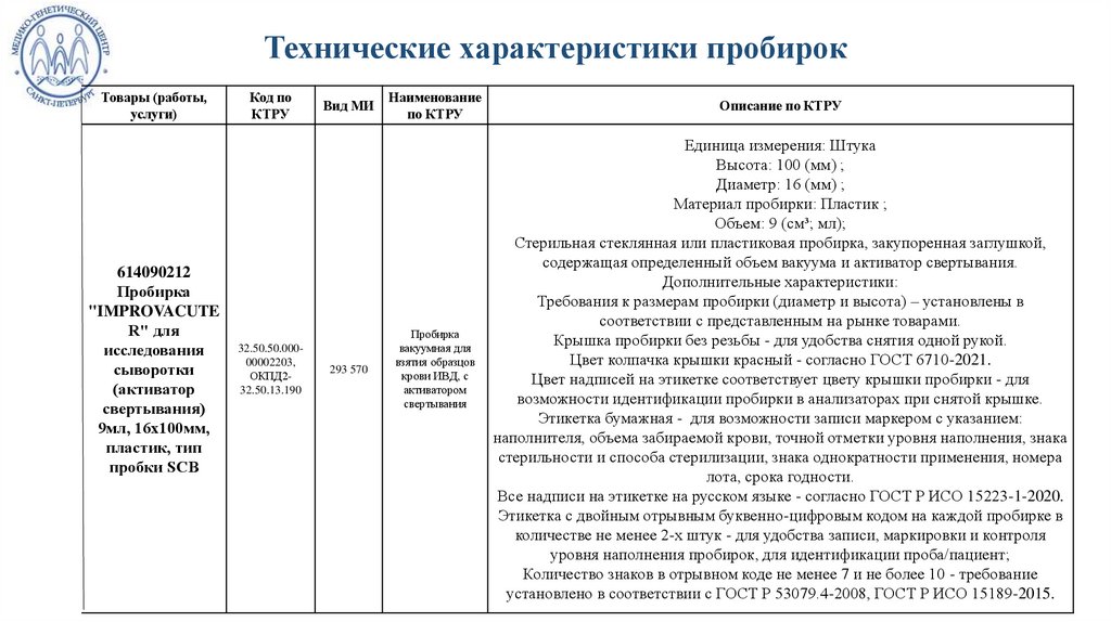 Закупка пробирок СПб ГБУЗ