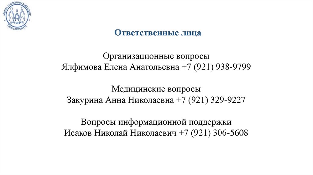 Ответственные лицаОрганизационные вопросы