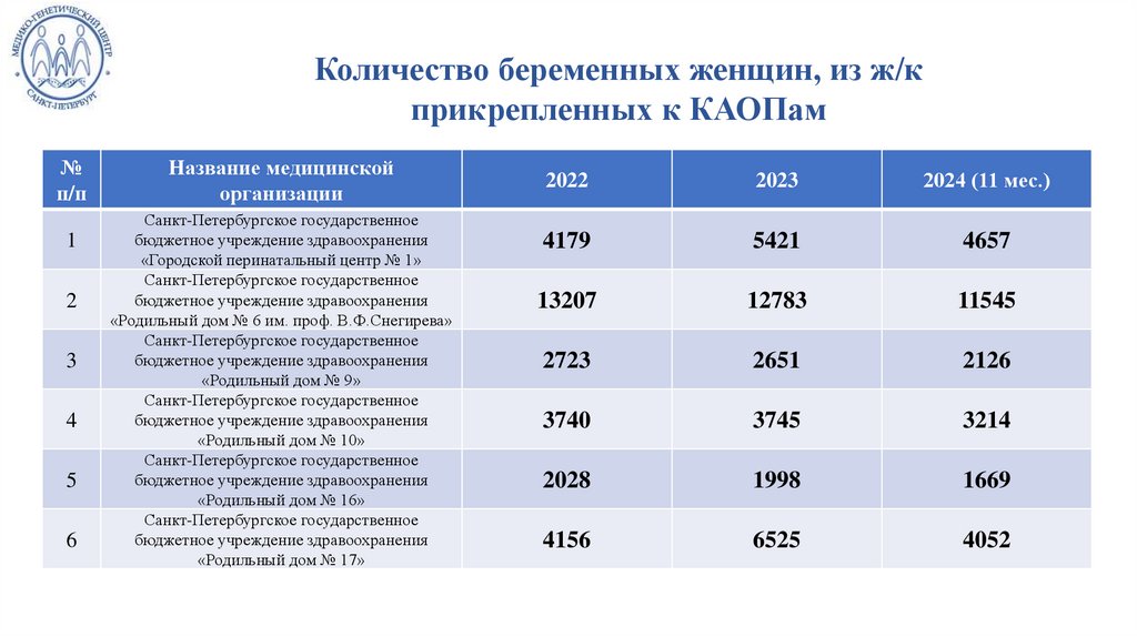 оказания медицинской помощи беременным женщинам в Санкт-Петербурге с целью профилактики