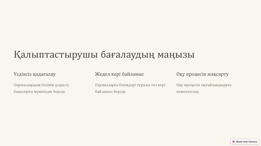 Қалыптастырушы бағалаудың маңызыҮздіксіз қадағалау