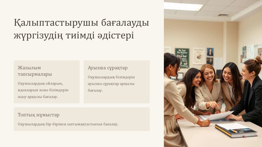 Бұл презентацияда біз қалыптастырушы бағалаудың тиімді әдістерін