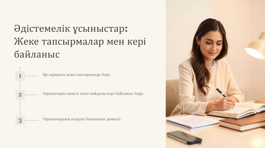 Әдістемелік ұсыныстар:Жеке тапсырмалар мен кері