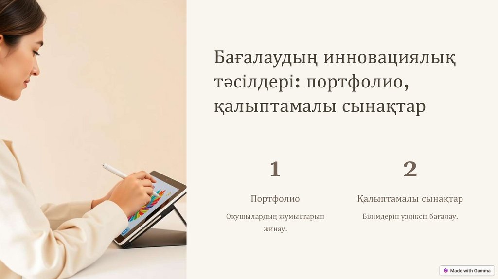 Бағалаудың инновациялықтәсілдері: портфолио,