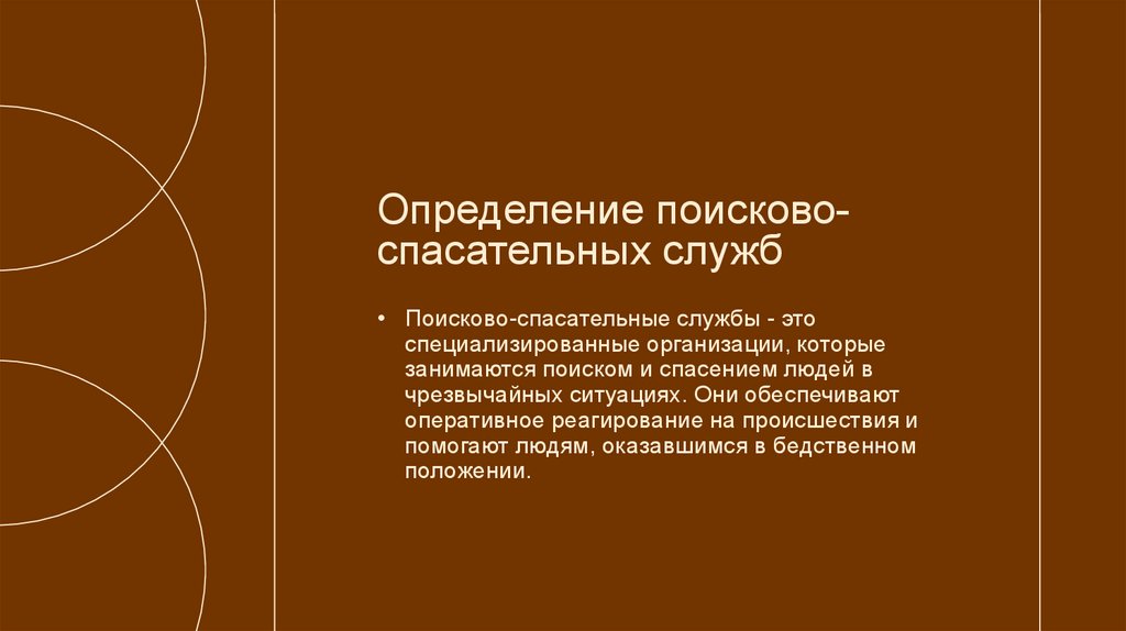 Определение поисковоспасательных служб• Поисково-спасательные службы - это