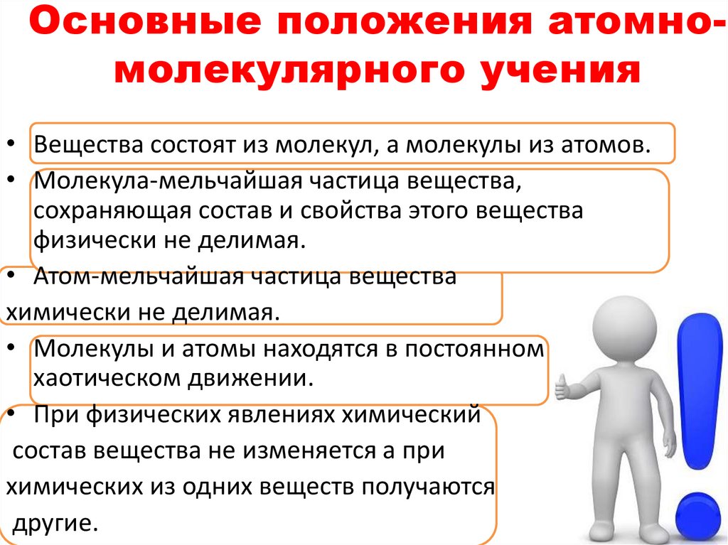 Основные положения атомномолекулярного учения• Вещества состоят из молекул, а молекулы из атомов.