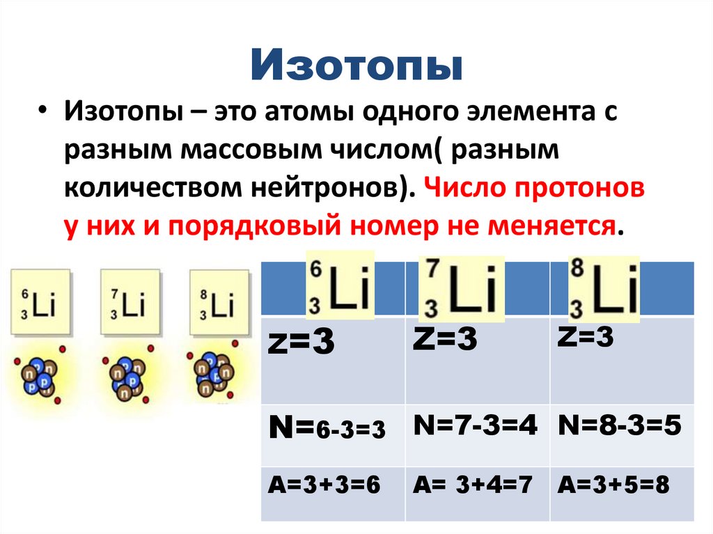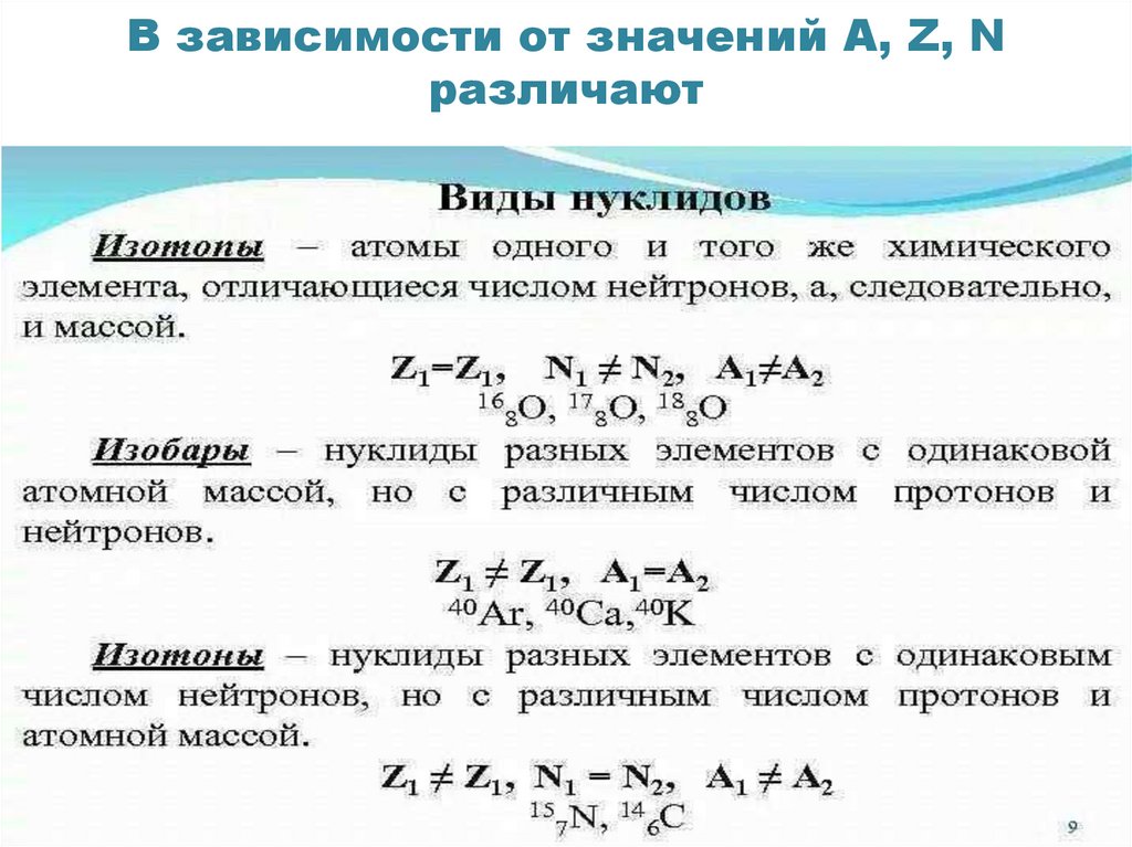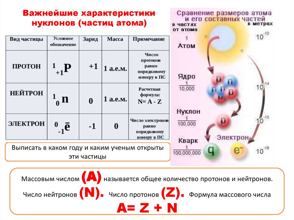 Число нейтронов (N). Число протонов (Z). Формула массового числа