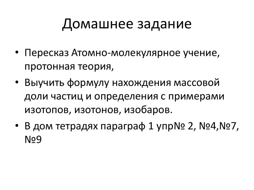 Домашнее задание• Пересказ Атомно-молекулярное учение,
