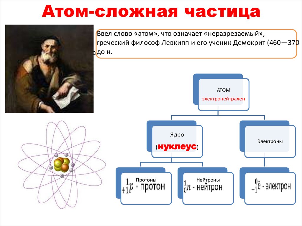 Атом-сложная частицаВвел слово «атом», что означает «неразрезаемый»,