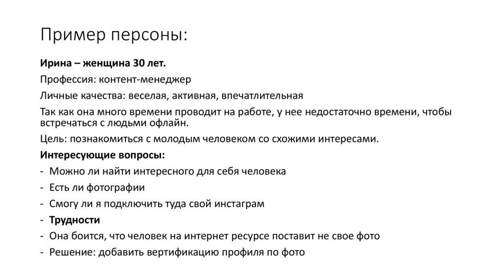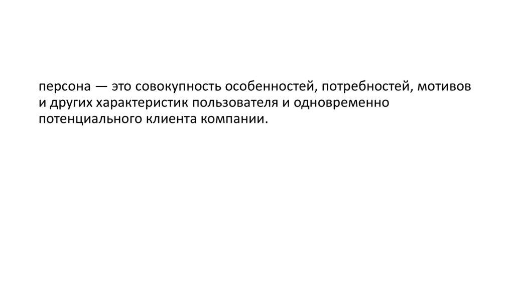 персона — это совокупность особенностей, потребностей, мотивови других характеристик пользователя и одновременно
