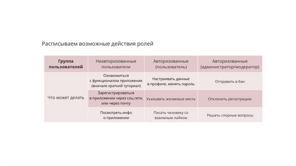 Мы определяем группы пользователей по ролям (это уже неотдельные люди, как в начале, в рамках одной роли может быть