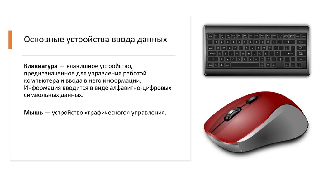 Основные устройства ввода данныхКлавиатура — клавишное устройство,