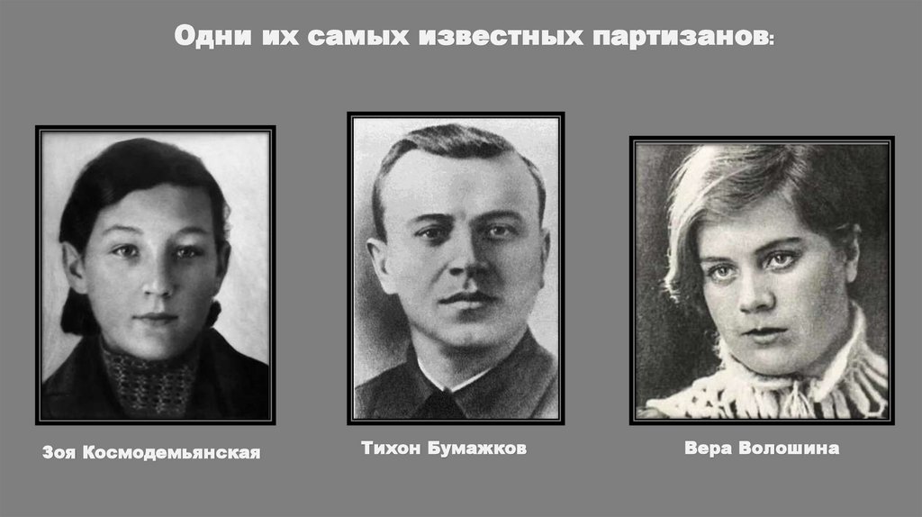 Одни их самых известных партизанов:Зоя Космодемьянская