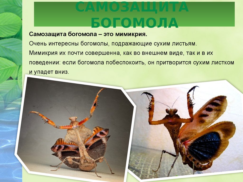Самозащита богомола – это мимикрия.