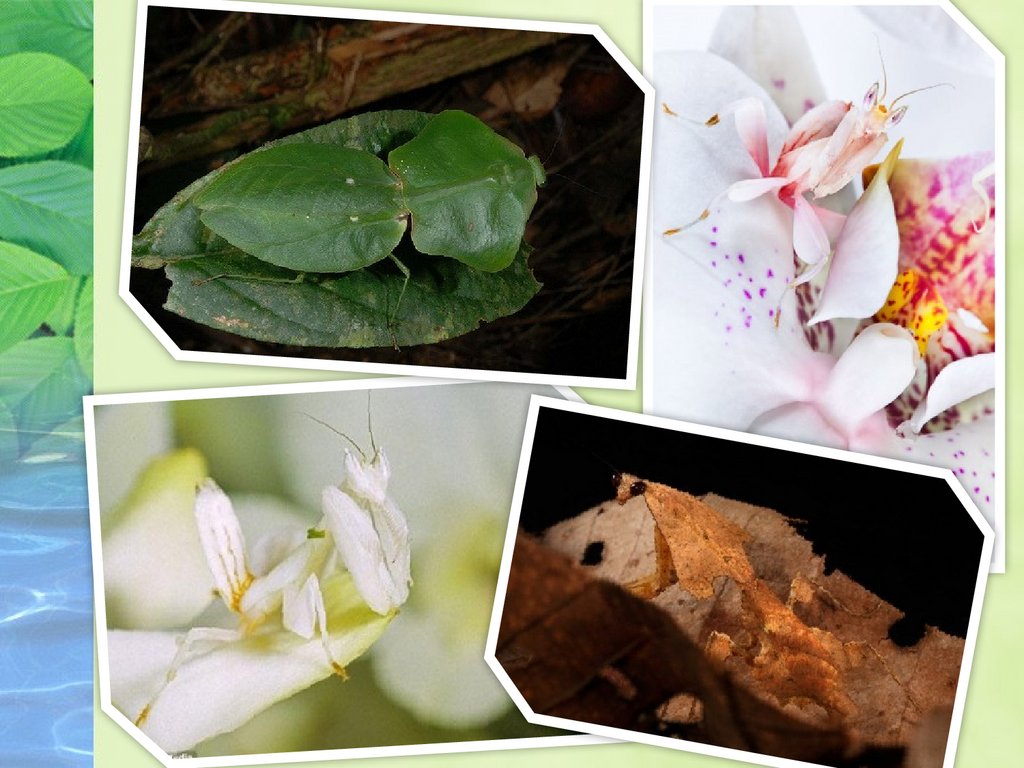 Очень интересны богомолы, подражающие сухим листьям.