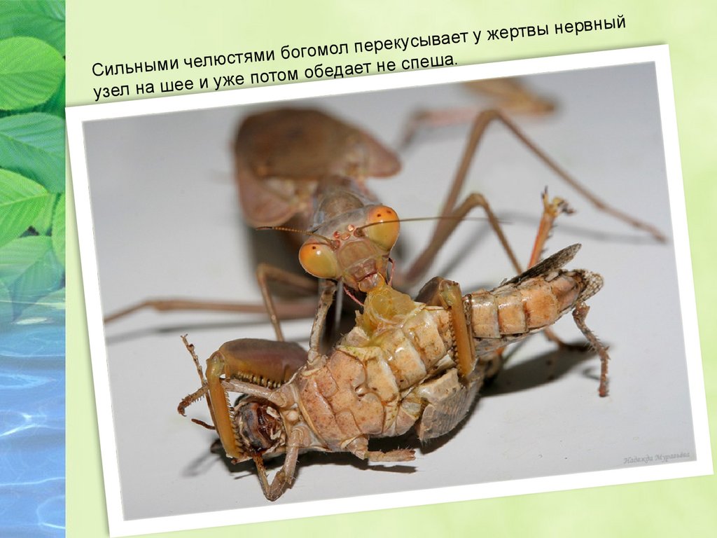 не может вырваться из его лап. Самцы богомола питаются достаточно