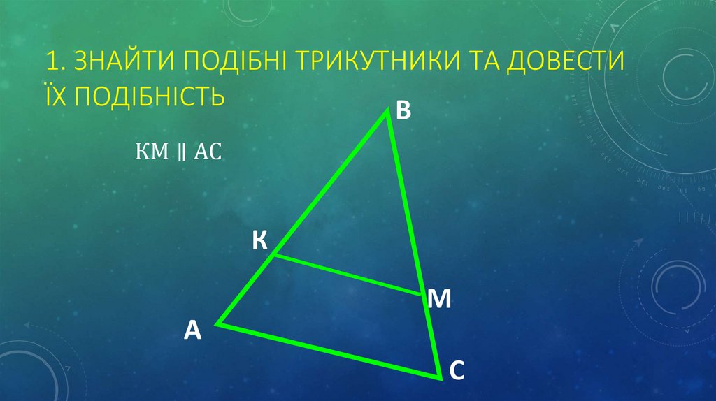 1. ЗНАЙТИ ПОДІБНІ ТРИКУТНИКИ ТА ДОВЕСТИЇХ ПОДІБНІСТЬ
