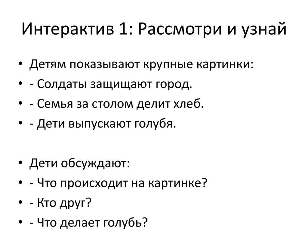 Интерактив 1: Рассмотри и узнай• Детям показывают крупные картинки: