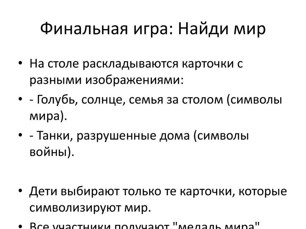 Финальная игра: Найди мир• На столе раскладываются карточки с