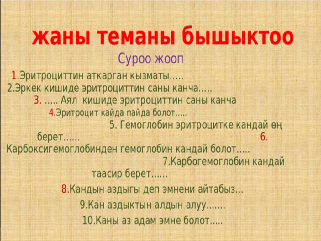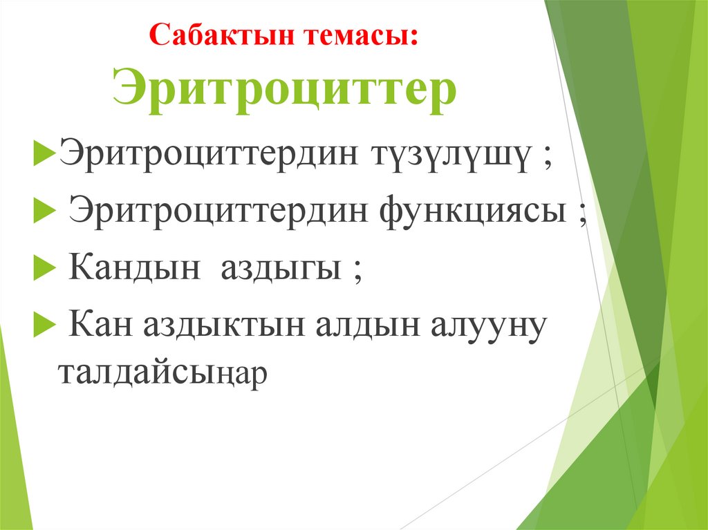 Сабактын темасы:Эритроциттер