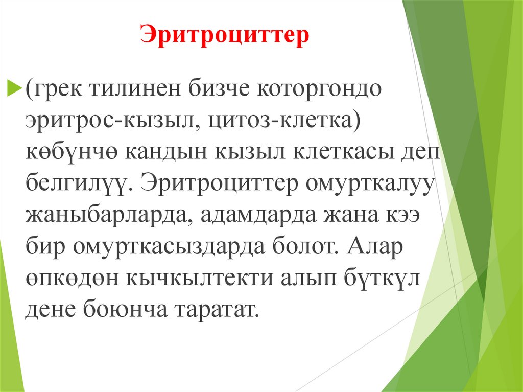 Эритроциттер(грек тилинен бизче которгондо