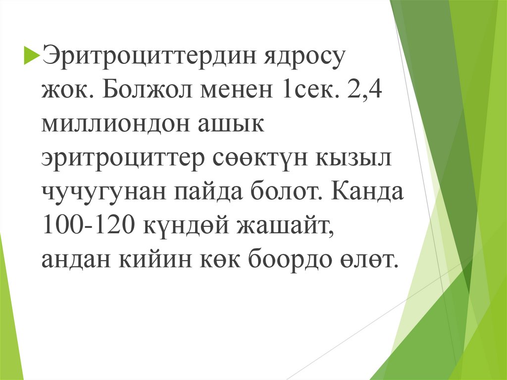 Эритроциттердин ядросужок. Болжол менен 1сек. 2,4