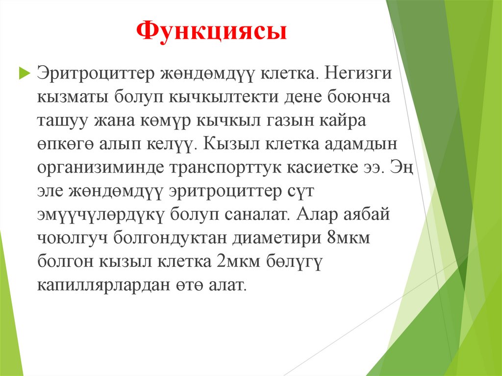 ФункциясыЭритроциттер жөндөмдүү клетка. Негизги