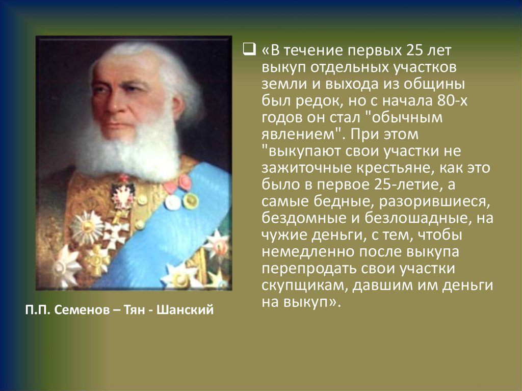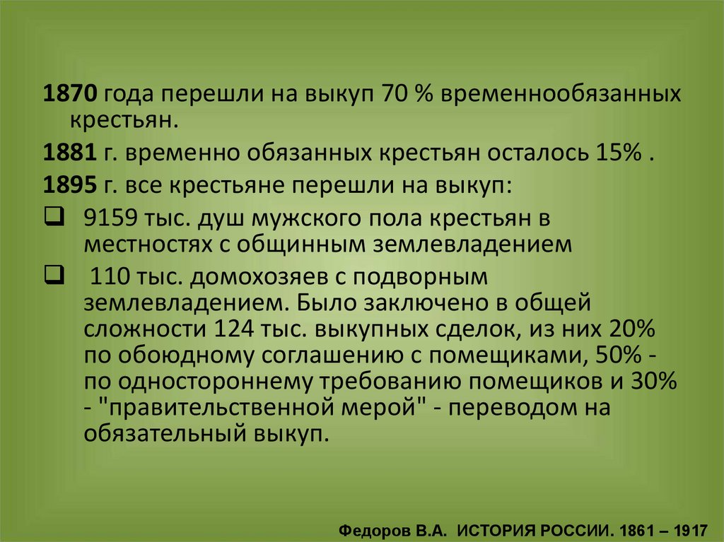 1870 года перешли на выкуп 70 % временнообязанныхкрестьян.