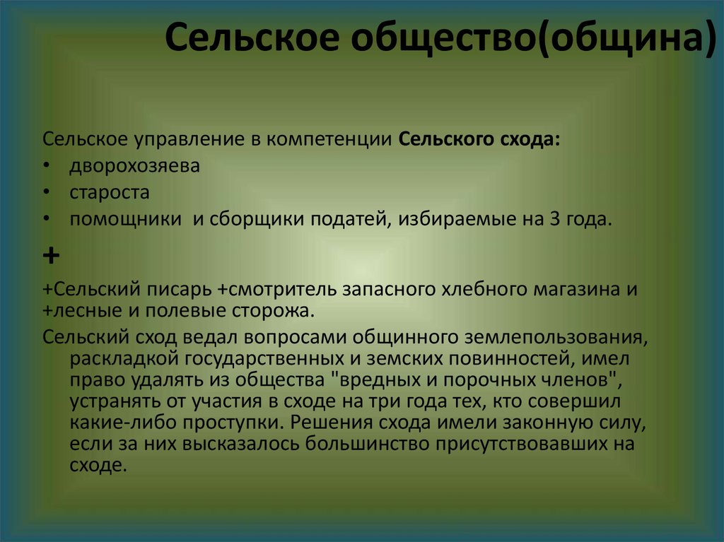 Сельское управление в компетенции Сельского схода:• дворохозяева