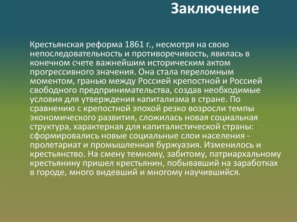 Крестьянская реформа 1861 г., несмотря на своюнепоследовательность и противоречивость, явилась в