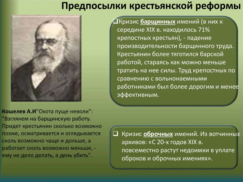 Кризис барщинных имений (в них ксередине XIX в. находилось 71%
